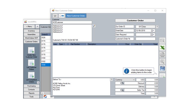 The picture also shows that you can drag any 'tabbed' window out of the main window and position anywhere on your display. So in the above example the customer order is now in its own window. This allows you to actually see and work on multiple task windows side by side at the same time rather than having them all tabbed one on top of the other.