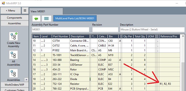 The Reference/Pos designator is a great tool for us; we use it to store information about specific treatments required to some parts and to follow up the logistics associated to those treatments (which are not done in house).