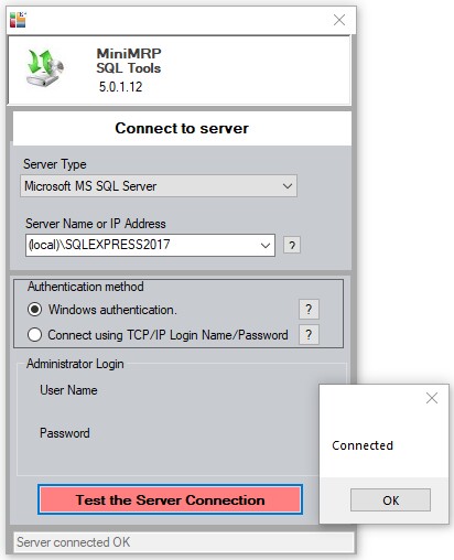 The first thing to do is to install MiniMRP version 5 Professional Edition. Only v5 Pro has the tools required to connect to SQL Server and create a database migration file. For example even when upgrading from v4 you'll still need to use the v5 tools to connect to the v4 database and create the backup/migration file.