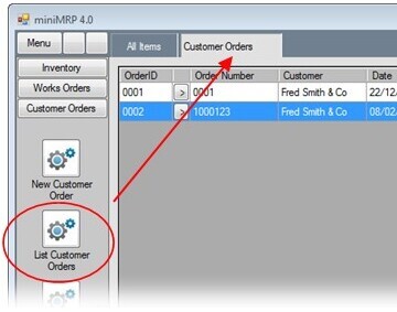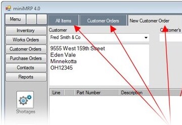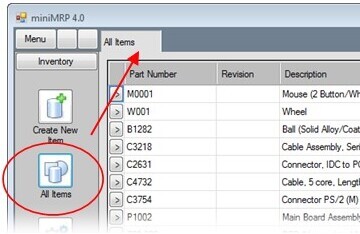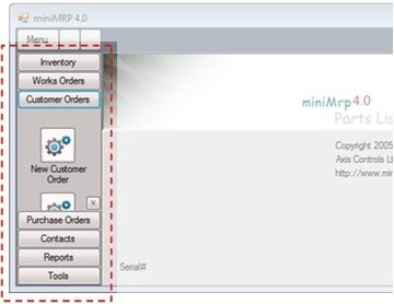When you start the MiniMRP program you'll see the 'outlook' style menu bar down the left side of the program window.